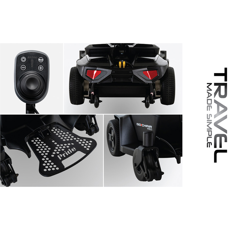 The Go Chair® MED is #1 for portability! With convenient feather-touch disassembly, the Go Chair MED allows you to experience lightweight travel and independence on the go. Compact, portable and perfect for travel, the Go Chair® MED is a feature-rich power chair that disassembles easily in just a few steps! A large footplate gives you the comfort you need.