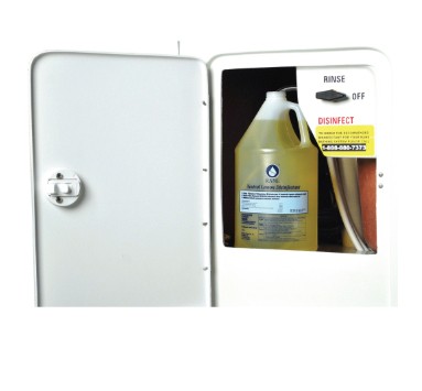 - The lockable cabinet provides a secure place for cleaning supplies and disinfectants