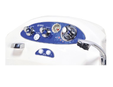- The built-in disinfection system cabinet is conveniently located on the side of the tub for easy access