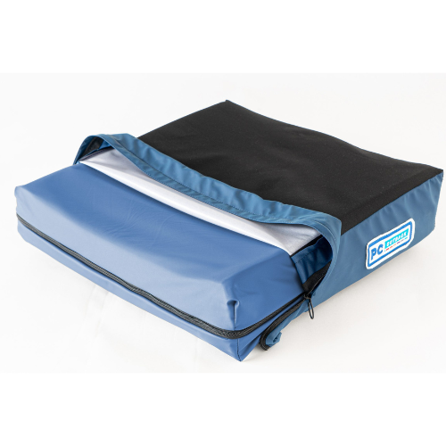 The PC Cutback cushion is lightweight, temperature regulating and prevents sliding. The PC Cutback is meticulously engineered using multiple layers, each with an important overall cushion function. The PC Cutback is designed for users who require a lightweight cushion, which regulates microclimate and prevents sliding. This cushion is also ideal for foot propellers, with it’s 1” anterior cutback to allow for easier full leg stroke.